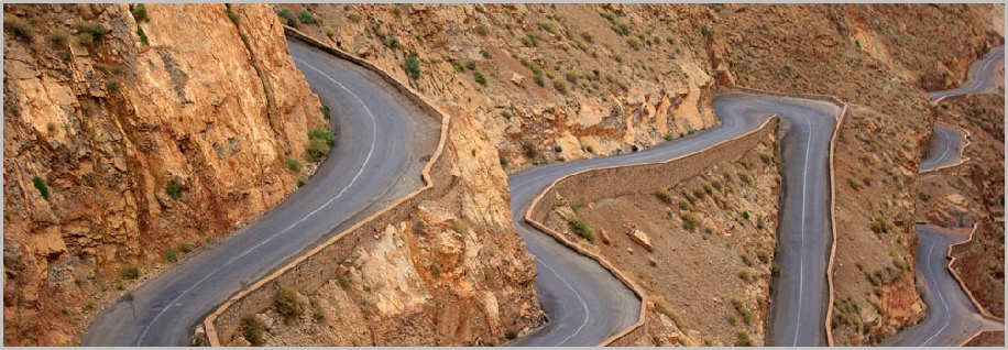 This route from Fes through Atlas montains to desert and back to Marrakech or Fes .