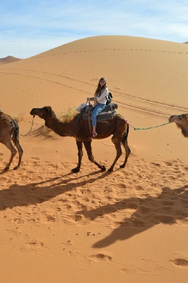 After breakfast at the hotel we depart to the Todra Gorge: a massive fault, rising to 300 m in a narrow valley thickstudded with palmeries and Berber Villages.. You will have lunch in the Gorge, travel further into the desert to the tiny village of Merzouga, where you will camel trek into the beautiful Erg Chebbi Dunes. You will spend the evening in a bivouac (camp), enjoy a Moroccan dinner, and sleep in traditional Nomad camel hair tent.